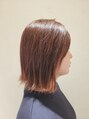 外ハネボブ。アゴ下ラインのボブで、毛先は自然にハネさせる。ピンク系イノアカラー施術。