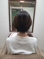 襟元をスッキリとさせた前下がりのショートスタイルです。フェイスラインを出したくないけどスッキリしたい方におすすめです。
