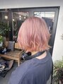 柔らかなピンクベージュが光に透ける、ガーリーなボブスタイル。毛先に動きをつけたゆるいカールで、軽やかさと抜け感をプラス。ダブルカラーで叶える透明感カラーが魅力です。甘すぎず大人っぽいニュアンスピンクで、秋冬にもおすすめのトレンドスタイルです