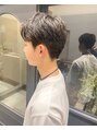 耳周りと襟足をタイトに、トップは軽い束感で立体感。清潔感と今っぽさを両立するハンサムショート。ドライ+スタイリング剤で簡単、ビジネス・学校OK。