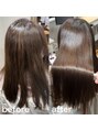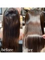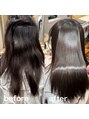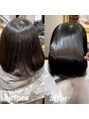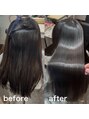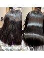 ダメージでゴワついていた髪が、驚くほどやわらかく♪アメイジングストレートで潤いとツヤをしっかりキープ。黒髪の透明感が際立つ美髪仕上がりです。