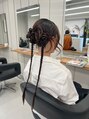 二つに結んで、編み込みとツイストをmixしたカチモリアレンジヘア。