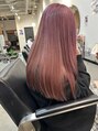ピンクカラー 前髪パーマ ぱっつん前髪 ボブパーマ