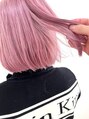ブリーチベースを再度、全頭ブリーチしたペールピンクカラー(ペールカラーはブリーチ2回以上必須)カットはワンカールのミニボブ