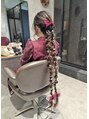 地毛で推定140cmはあり、座った状態で毛先が床に付いてました!中間あたりのポニーからツインアレンジをしました.。ヘアアクセサリーをいろいろお持ちでしたので更に可愛い雰囲気が生まれました☆ぜひbeforeのお写真と見比べてみてください♪