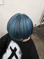 #ダブルカラー#ローライト#デザインカラー#水色#メンズカット#中性カット