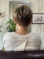 マッシュショートのハイライト3Dカラーで遊びをプラス!表面を中心に細かくハイライトを入れ、下にいくに連れ少なめのハイライトにすることでより立体感をプラス!ケアブリーチがダメージを極限に抑えれるのでオススメ!【路地裏salonよろ家 代表 井上 優紀】