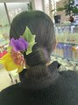 ロングヘアを活かしてツインのお団子アレンジにプラスで毛束を垂らして周りと被りづらいデザインにさせて頂きました♪お呼ばれやパーティーシーンなどにオススメです*
