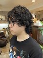 メンズのウルフパーマです!襟足は長めでサイドは耳下くらいです。ゆるすぎず強すぎないパーマの動きになります!前髪は分けているスタイルです。