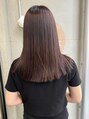 ストレートのロングスタイルです。ツヤ感をしっかり感じるピンクブラウンが上質な質感のヘアカラーです。綺麗な面をいかせるようにあまりすかず、ノンアイロンでも綺麗なツヤを持たせています◎