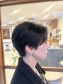 黒髪+ハンサムショートで少しモードなテイストに仕上げました。ブラックのコーディネートと相性◎