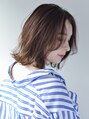 肩下3センチに長さを設定。段はトップのみ入れて角を取ります。前髪は、センターで分けてほおで動く長さにカットします。パーマは、毛先にワンカール外はねにし、トップは根元からかけて動きを出します。カラーはベージュ系でお肌に馴染む寒色系に!