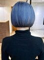 ショートボブベースにカラーをハイトーンのアッシュブルーを入れて個性的なスタイルに。ダークな色の服にも似合うのでモノトーンの服が多い方にオススメです