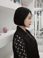 ワンレンのミニボブ.ぱつっとした切りっぱなしのカットラインボブ/レイヤーカット/ショートカット/透明感カラー/ブリーチなし/フェイスレイヤー/髪質改善/縮毛矯正/ /表参道/明治神宮前