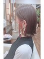 外ハネの切りっぱなしボブスタイル。内側の耳周りにポイントでブリーチして色を抜きます。色を抜いてから、ピンク系とレッド系の色味を入れました。ワンポイントが可愛いです♪