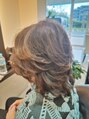 大人女性ミディアムパーマスタイルハイライト白髪染め
