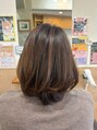 毛先に軽さを入れているので、動きが出やすく、乾かすだけでもまとまりやすいシルエットです。表面に細めのハイライトをプラスして、ツヤと立体感を演出。重く見えず、柔らかく軽やかな印象に仕上げています。