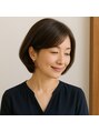 大人のきれいめボブ。後頭部に自然な丸みを持たせ、毛先は内にやわらかく収まるシルエット。前髪は軽く流し、ツヤと上品さのある落ち着いた印象に。