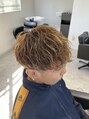 明るめの茶髪に細かいメッシュを入れた波巻きパーマ。動きと束感をしっかり出し、ラフで男らしい印象に。軽さと抜け感を両立したおしゃれショートスタイル。