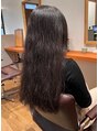 毛先までクセと乾燥が気になるので全体に縮毛矯正を施術、出来るだけ傷めず柔らかで自然な仕上がりを意識しています