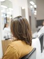 3ヶ月前にカラーリングの履歴のあるお客様。根本のリタッチはしたくないとのことで、ハイライトのみの施術でした。毛先にどのくらいカラーの残留があるかわからないので、弱めのブリーチでしっかり長めに放置。