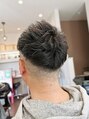 ベリーショートツーブロック。ワックスをくしゅくしゅするだけで決まるスタイルです。髪が多い方でもフレンチカットグランで毛量調整し快適な毛量へ。