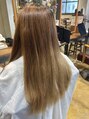 毛先ブリーチ履歴有り、なるべく傷ませないように酸性の縮毛矯正の薬を使用しました。毛先は切りっぱなしスタイルに。