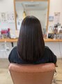 デジタルパーマ、くせ毛で髪がゴワゴワしてました。長さカットしてメテオストレート/髪質改善させていただきました。メテオカラーも一緒にさせていただきました。