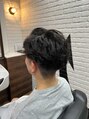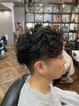 全体に動きが出るようゆるめのパーマがかかっています!自然なセンターパートで、立ち上がりと流れをつけることで爽やかな印象を出してます。耳まわりは短く、ツーブロック気味でカットする事によって清潔感が出るようにしています(^^)