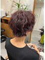 ハイライトと赤カラー。お客様のクセをいかしたスタイリングがかわいいです。