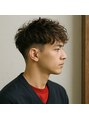 サイドの刈り上げをタイトに締め、段差がしっかり見えるツーブロック。 トップは自然なくせ毛風の動きをつけて、軽さと立体感を強調。 バランス良く洒落感を出したショートスタイル。