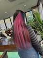 インナーブリーチ継続でピンクカラーです。ロング、髪質の太さ量感によってケアもしっかりめに。