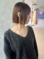 顎下ラインで揃えた切りっぱなしボブは、ツヤとラインの美しさが際立つ上品スタイル。仙台で大人可愛いボブを探す方におすすめ。顔まわりの収まりが良く、小顔効果とまとまり感も抜群です。