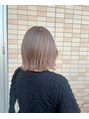 ブリーチありのダブルカラーで、やわらかく透明感のあるミルクベージュに。カットは、ぱつっとラインがかわいいショートボブ。すっきりしたシルエットで、おしゃれに決まります◎光に透けるような“ふんわり感”を楽しんでください♪