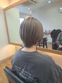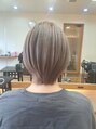 透明感たっぷりのミルクティーベージュカラー。ケアブリーチを使用しダメージを抑えながら理想の色味を実現します。丸みのあるショートスタイルは骨格に合わせたカット技術で360度美しいシルエットに。柔らかく優しい印象で、20代から40代大人女子におすすめ