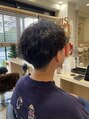 根本からボリュームを出したツイストスパイラル。ツーブロックでメリハリをつけて清潔感のある印象に。