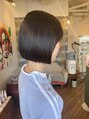 コンパクトにスッキリ切りっぱなしなボブスタイル。ストレートパーマで更にスタイリングしやすくしております。耳掛けしても可愛いですね!^^