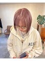 根元の伸びてきた部分をブリーチでリタッチして、ピンクベージュにカラーしました!カットはあごラインで切りました。