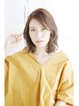 かきあげた前髪に鎖骨ラインのカールスタイルです。毛先のニュアンスカールは柔らかい動きをだした人気のスタイルです。