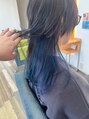 深いブルーのインナーカラーをレイヤーで見せるスタイルです。