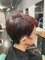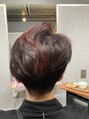 アシンメトリーカットレッドヘアマニキュアで白髪を赤く!