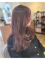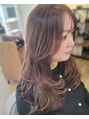 重くなりがちなロングスタイルに、たっぷりとレイヤーを入れて動きをプラス!顔まわりに流れるようなカットラインで、柔らかく女性らしい印象に仕上げています。全体はツヤのあるブラウンベージュで光の反射でもきれいなお色味を。