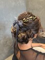結婚式アレンジ。ヘアセット。2日連続だったので本日はラブリーに。ご持参のリボンを添えて。おまかせアップスタイル。金箔で華やかに。目を引くアレンジ。気分上がるスタイルで行ってらっしゃいませ。セットはMINAのみ。
