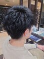 多毛直毛で広がりやすい髪質のお客様のショートレイヤースタイルです。サイドをツーブロックにして襟足をさっぱり刈り上げにする事で爽やかに仕上げました。