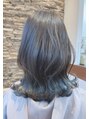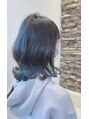 外ハネミディアムにインナーカラーでブリーチしてブルーアッシュの色味を入れてます。透明感のある感じが素敵です!