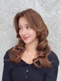 ゆるやかなウェーブで女性らしさを引き立てるセミロングスタイル。顔まわりに柔らかく動きをつけて、お顔のバランスを意識しています。