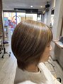 ハイライトを入れる事で伸びてくる白髪をあまり強調させないようにボカシて目立たなく!メッシュの太さも細め多めのやや太めも混ぜながら!