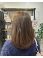 透明感のあるベージュカラーは、重く見えがちな秋冬のファッションにも軽さをプラスしてくれる万能カラーです。肌なじみもよく、ツヤ感を保ちながら柔らかい印象に仕上がります。表面にもレイヤーを入れることで、後ろ姿もふわっとして可愛いです!