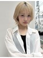 切りっぱなしボブに表面のみレイヤーを入れ、シースルーバング、サイドバングを作る。全体の長さ設定は輪郭に合わせた似合う長さを設定する。カラーはブリーチ2回、もしくは3回してから少し黄ばみを飛ばしてクリーミーに仕上げる