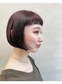 ピンクブラウン×オン眉ミニボブ